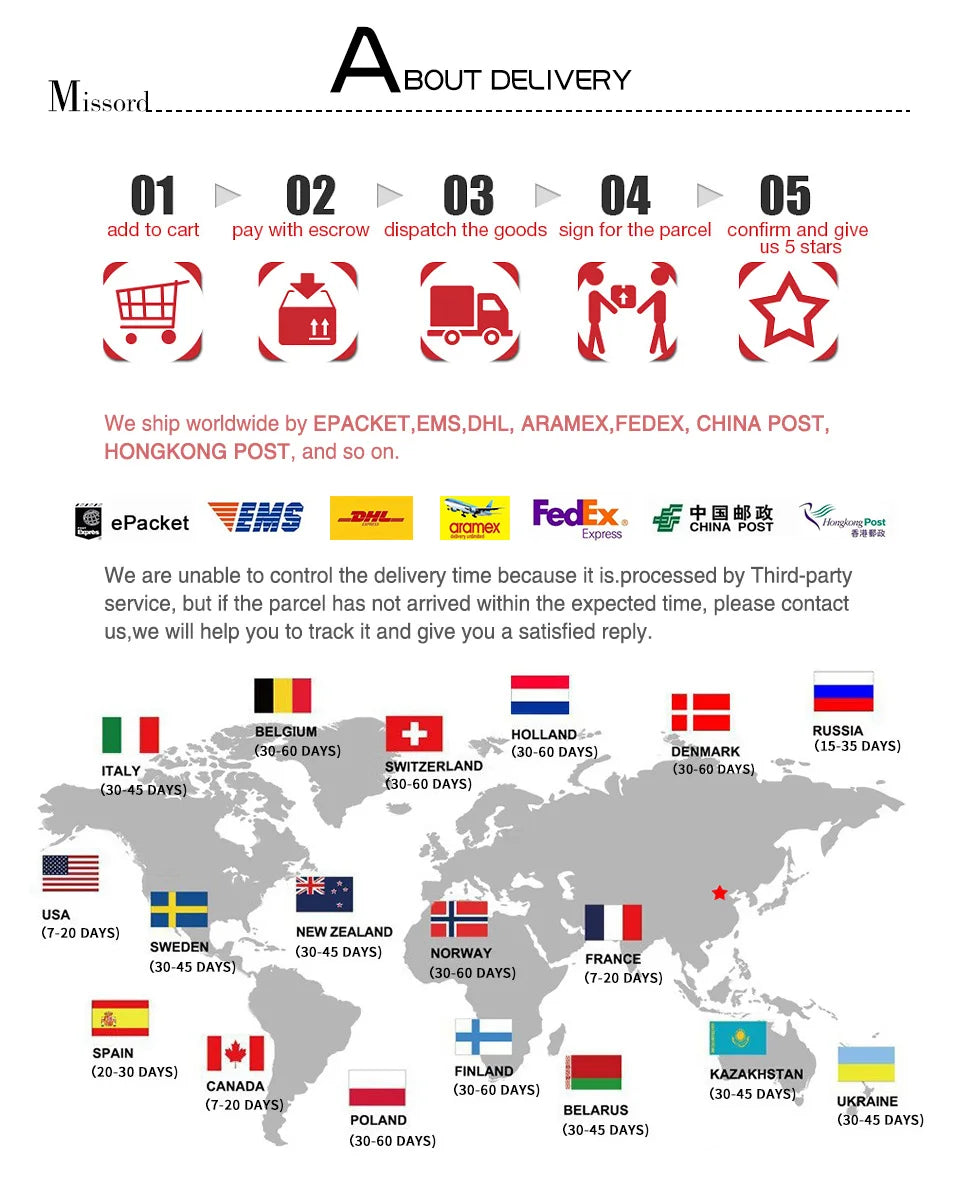 When we have received your order, you will automatically receive an e-mail confirming your order. Orders made before 2 PM (CET) will be picked, packed and shipped the same day. Delivery time is usually 2-4 working days with DHL Express.