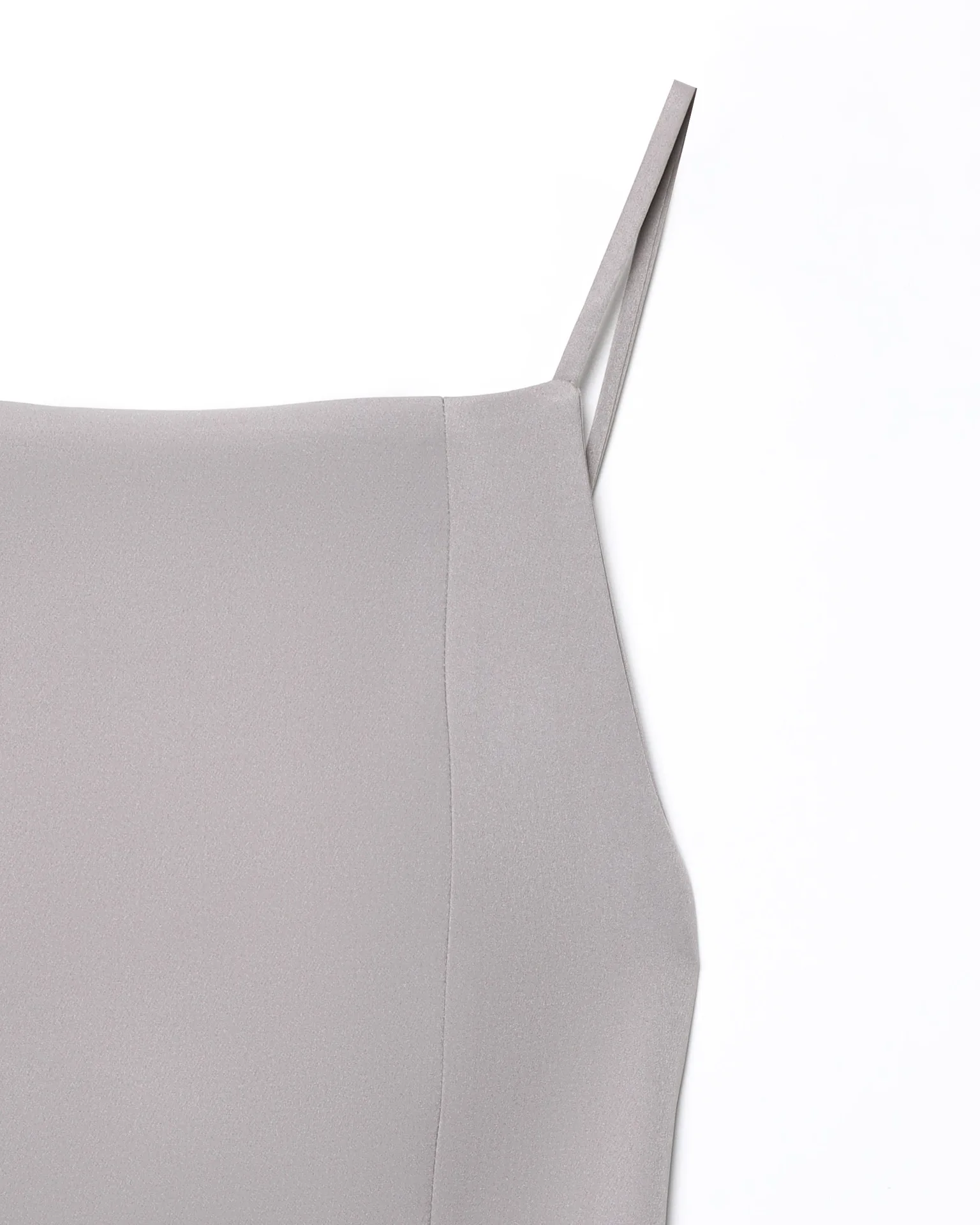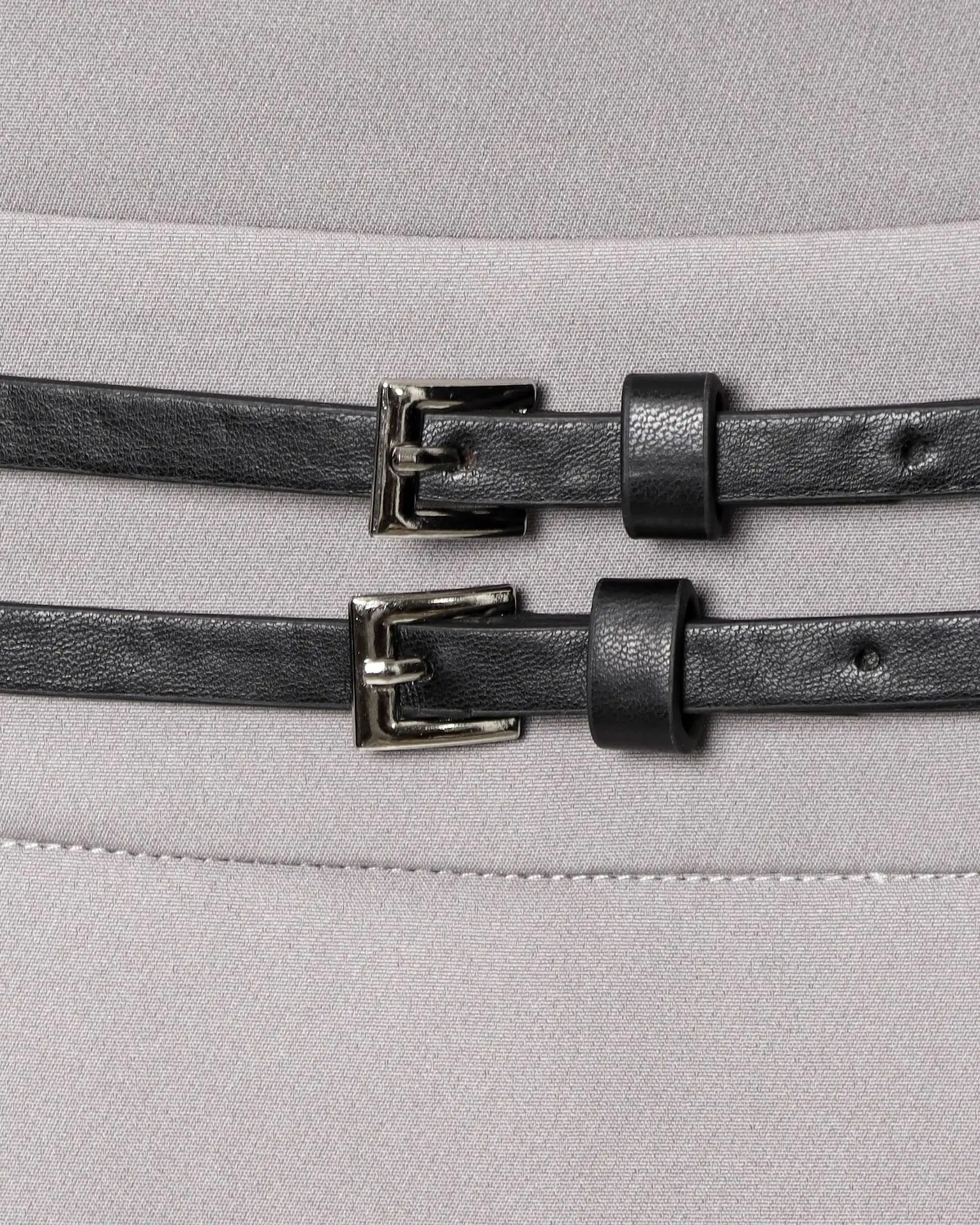 ZBZA Women's Pleated Dress with Belt Backless Spaghetti Strap Square Neck Low Waist Solid Color Mini Dress Summer New Chic Top - Gray dress / S