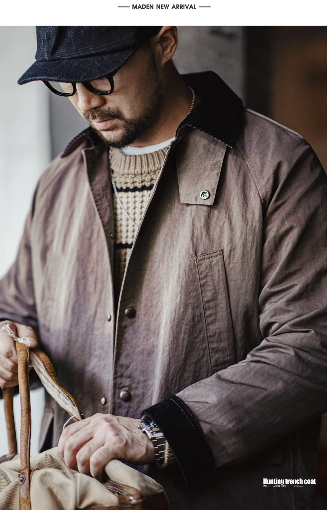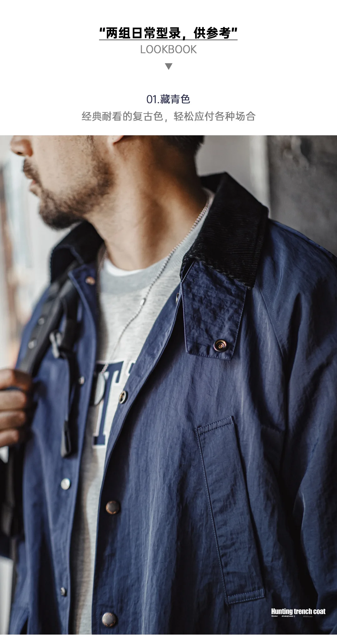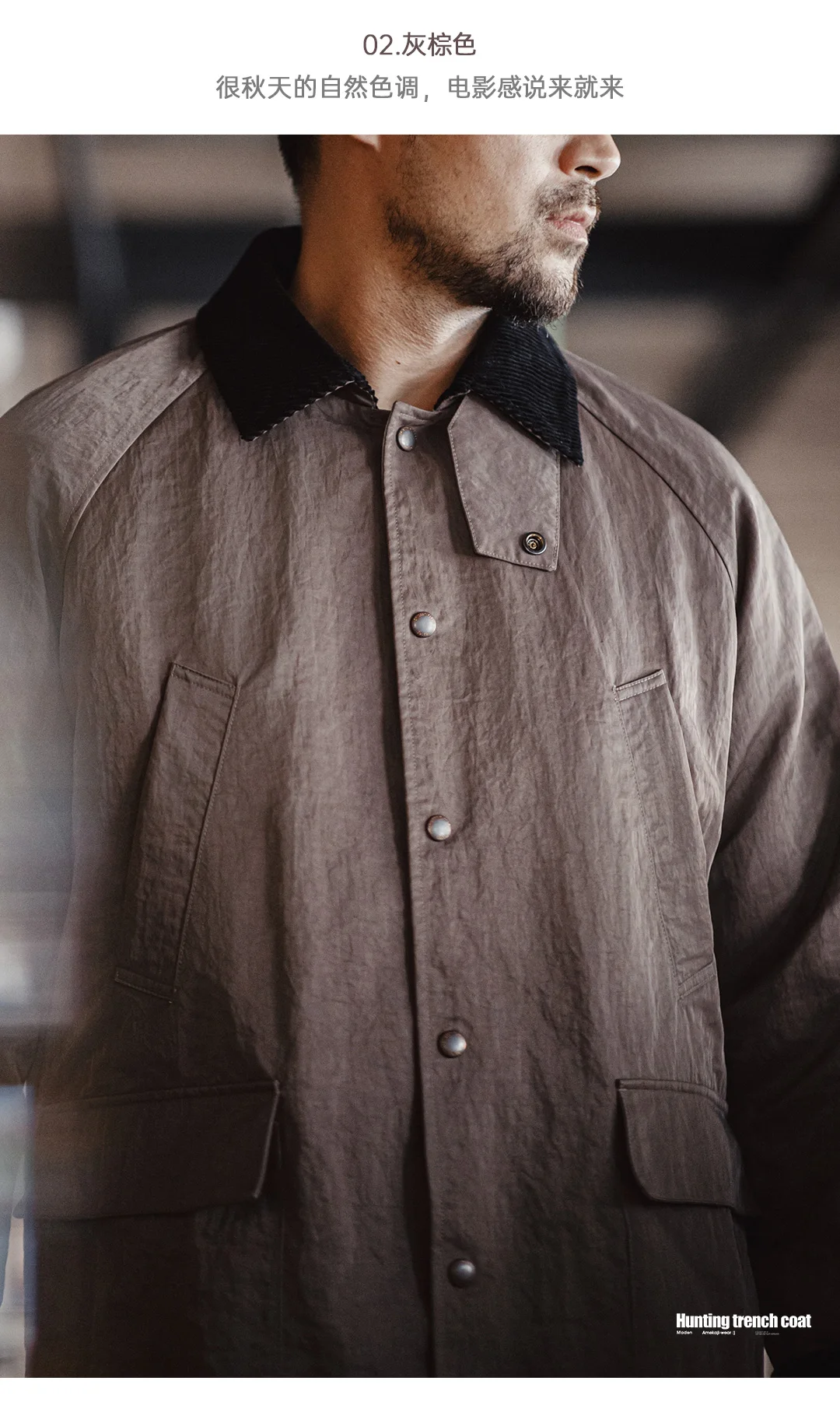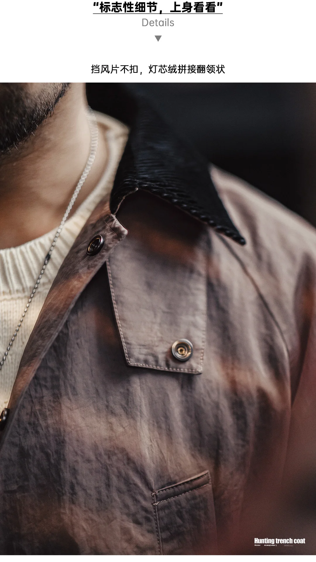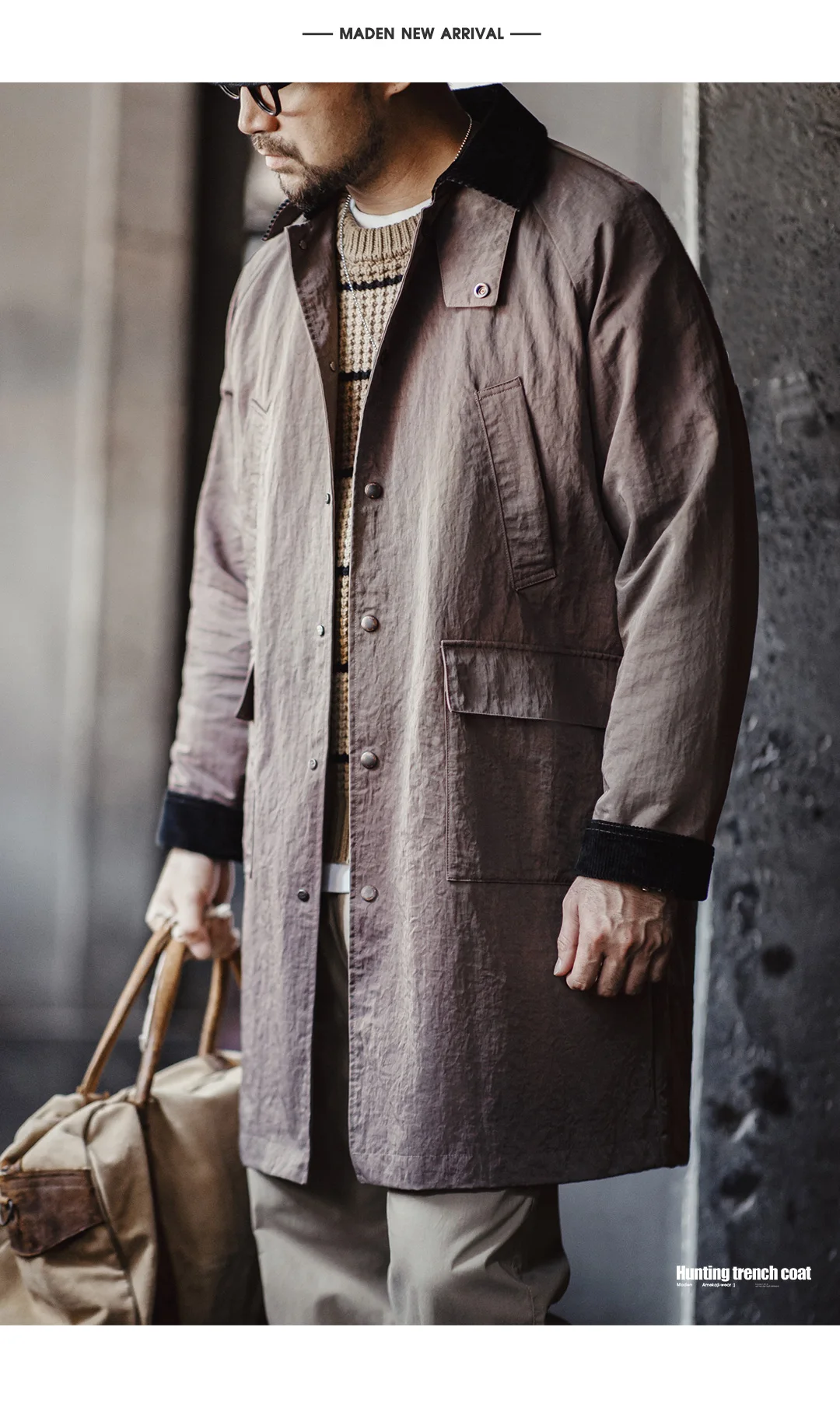 Maden Retro Corduroy Lapel Safari Trench Coat Loose Fit Single-breasted Mid-length Versatile Jacket for Men's Spring and Autumn