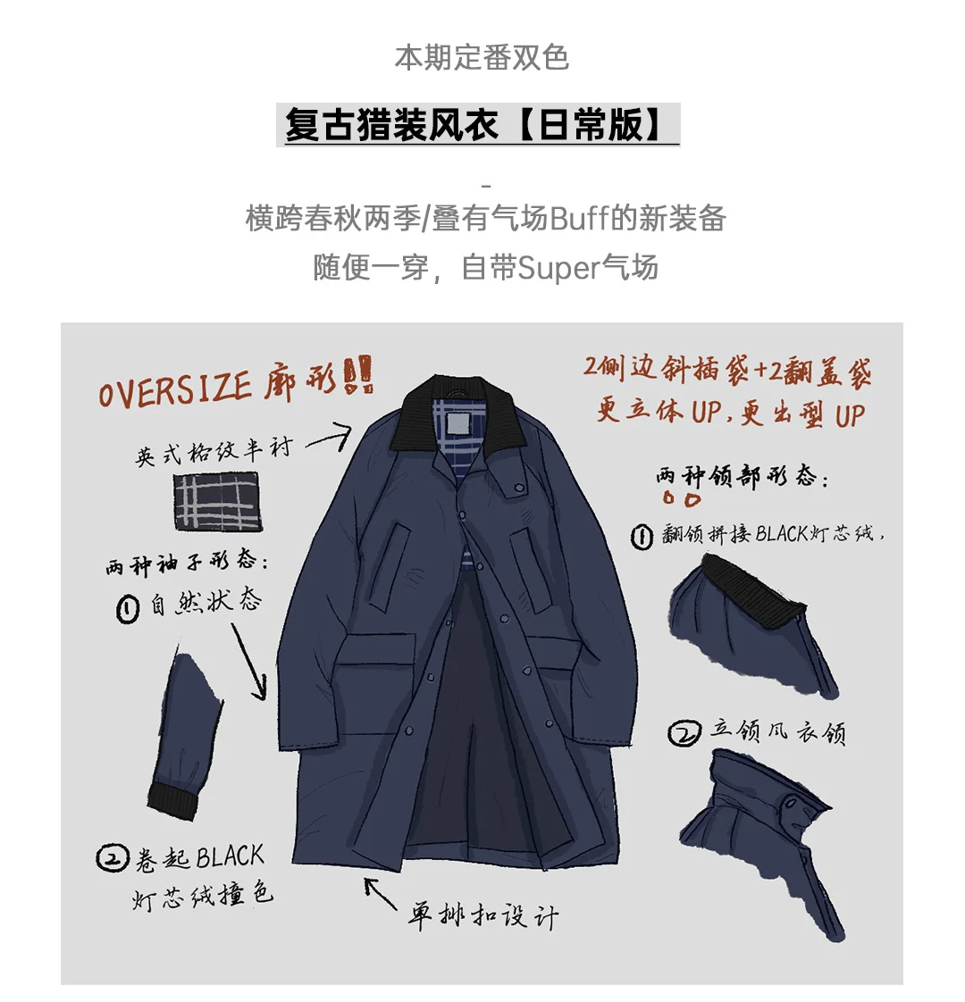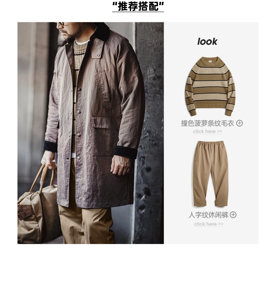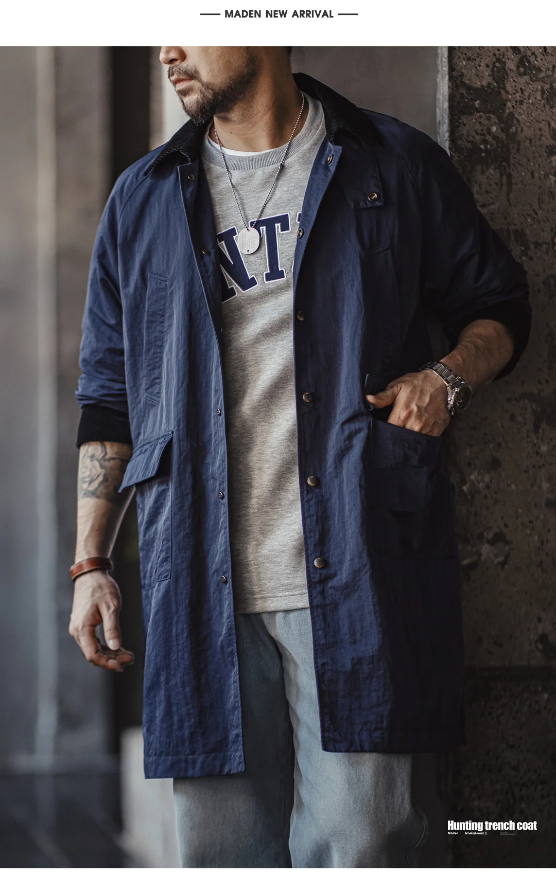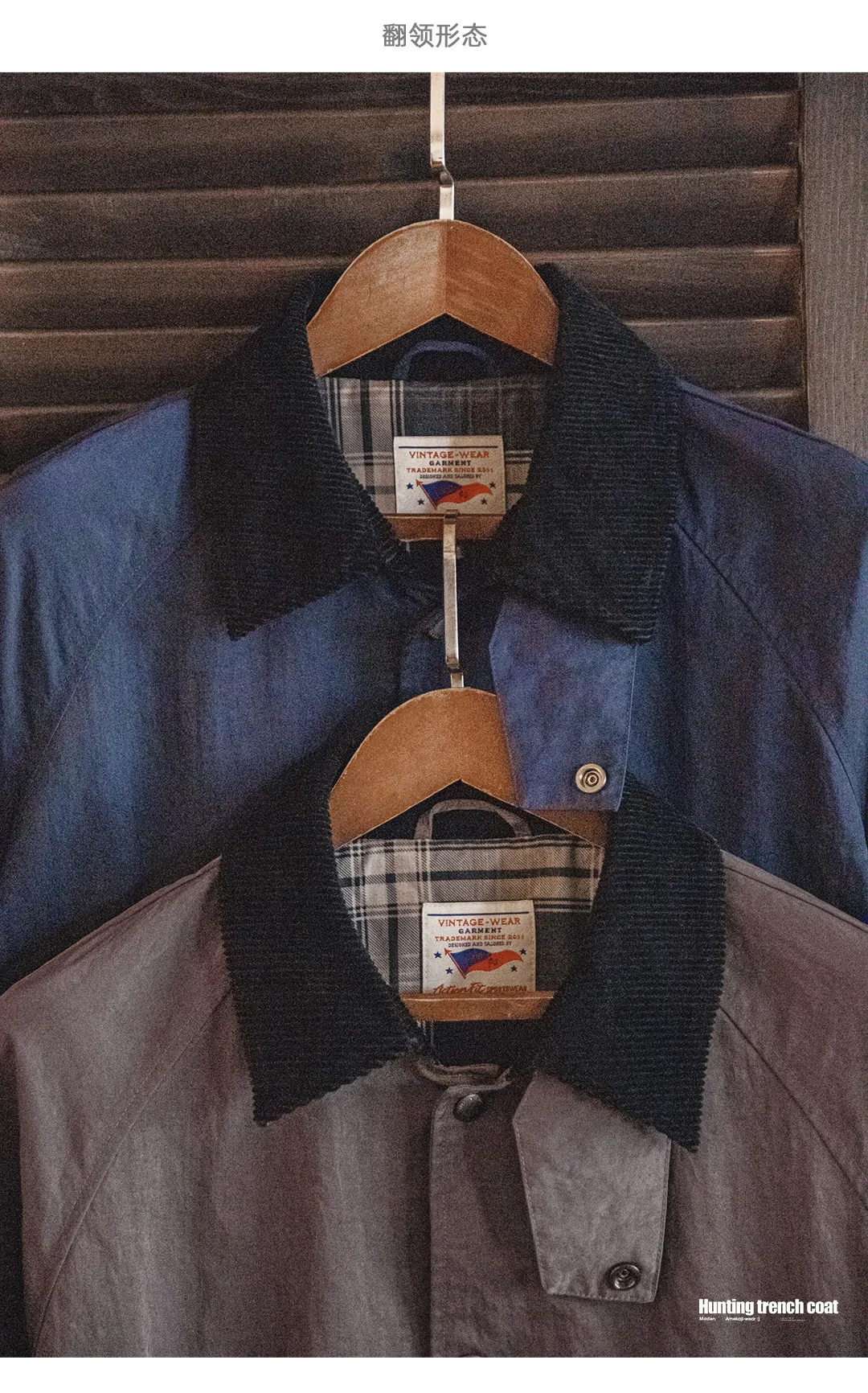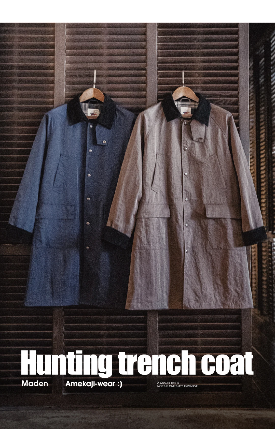 Maden Retro Corduroy Lapel Safari Trench Coat Loose Fit Single-breasted Mid-length Versatile Jacket for Men's Spring and Autumn