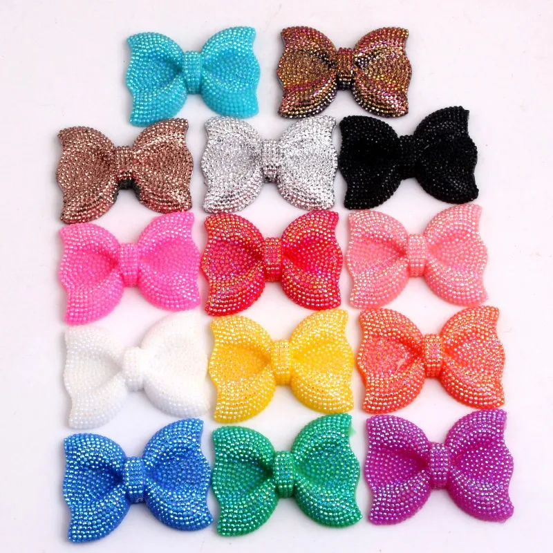 Kwoi Vita Middle Vertical Hole 42x54MM Chunky Resin Rhinestone Bows Beads 50PCS A Lot For Jewelry - random mixed