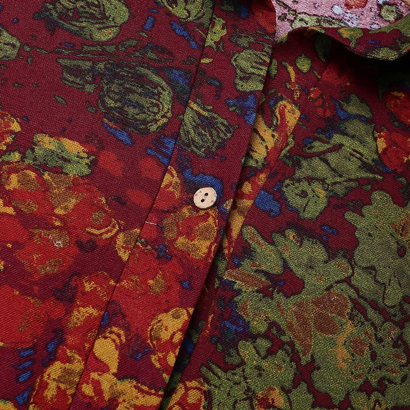 ZANZEA Floral Printed Long Sleeve Cotton Maxi Dress Women Spring 2025 Loose Casual Lapel Neck Shirtdress Streetwear Long Vestido - Wine Red / M