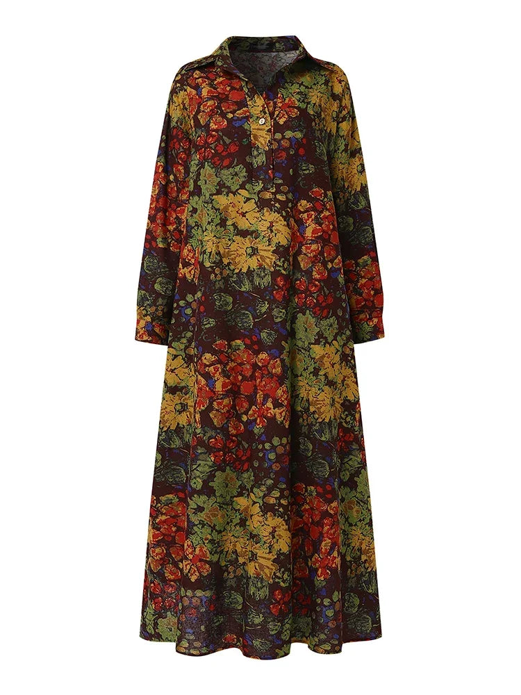 ZANZEA Floral Printed Long Sleeve Cotton Maxi Dress Women Spring 2025 Loose Casual Lapel Neck Shirtdress Streetwear Long Vestido